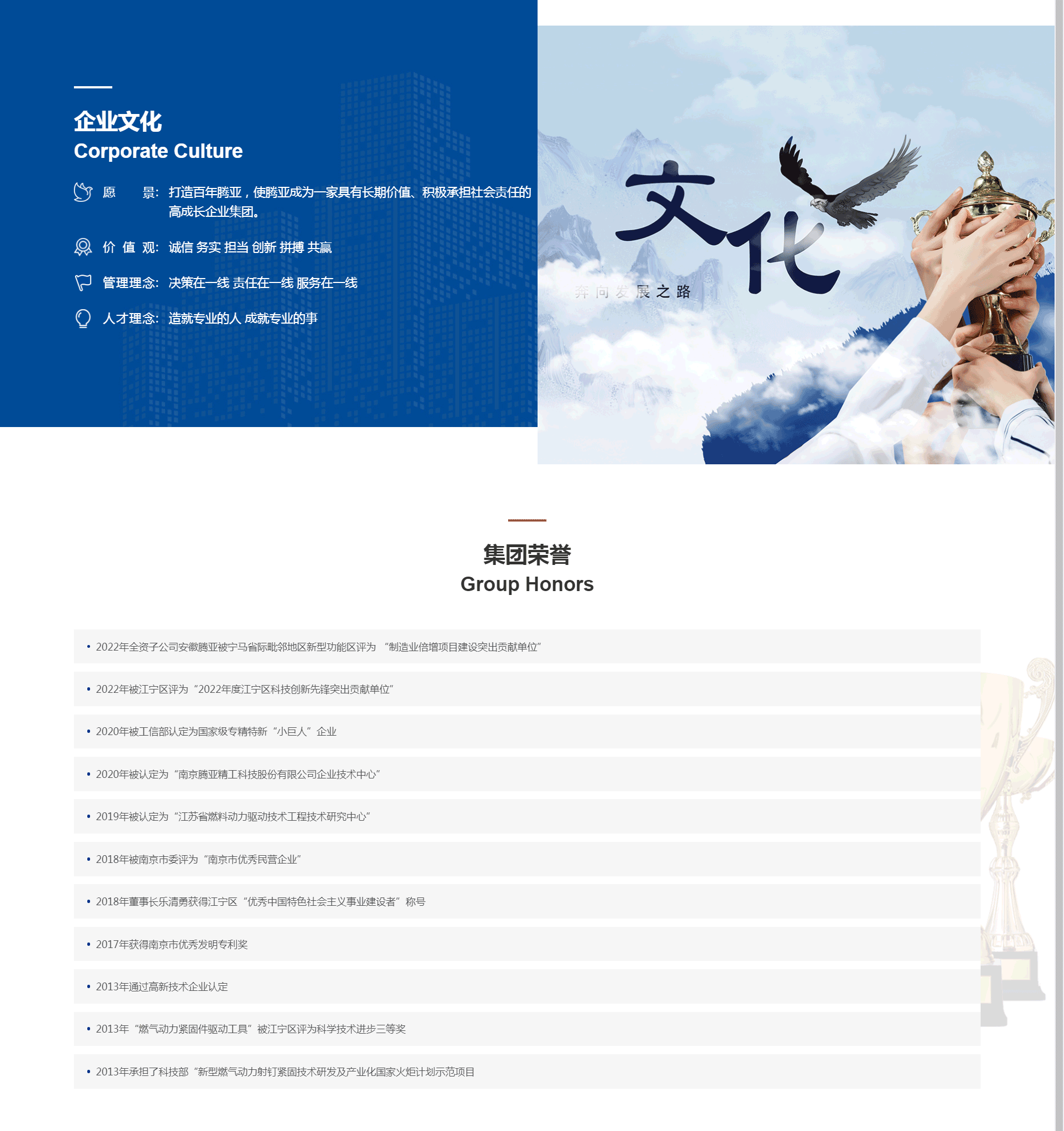 南京騰亞實(shí)業(yè)集團(tuán)有限公司是一家位于江蘇省南京市的民營(yíng)企業(yè)集團(tuán),由多家跨行業(yè)、多元化發(fā)展的企業(yè)組成,參控股企業(yè)包括南京騰亞精工科技股份有限公司(股票代碼:301125)、南京騰亞裝備有限公司、南京騰亞機(jī)器人科技有限公司、南京騰森分析儀器有限公司、南京騰亞生物科技有限公司。目前的主要產(chǎn)業(yè)布局涵蓋建筑家居用品、通用設(shè)備、環(huán)境工程、生物工程、人工智能等方向。隨著公司的持續(xù)發(fā)展,總資產(chǎn) 規(guī)模不斷壯大,利潤(rùn)總額穩(wěn)步增長(zhǎng),根據(jù)國(guó)家宏觀產(chǎn)業(yè)政策導(dǎo)向,結(jié)合自身資源、機(jī)制和人才優(yōu)勢(shì),對(duì)內(nèi)進(jìn)行產(chǎn)業(yè)整合,對(duì)外加投資參與力度,積極謀劃布局金融投資、化工、新能源等行業(yè),以實(shí)現(xiàn)企業(yè)更大的發(fā)展。